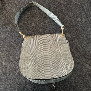 DOONEY & BOURKE NORTH/SOUTH REESE SHOULDER BAG IN METAL GREEN , RED INTERIOR GUC