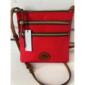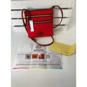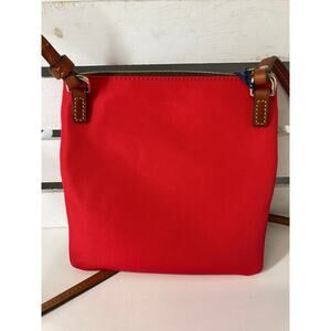 DOONEY & BOURKE NWT SMALL RED CANVAS, LEATHER CROSSBODY BAG