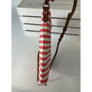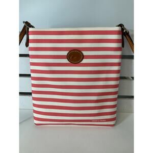 DOONEY & BOURKE PINK, WHITE STRIPED SMALL CANVAS CROSSBODY BAG