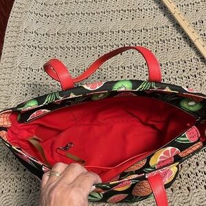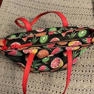 DOONEY & BOURKE Summer Fruit Print Tote Purse Watermelon Pineapple Kiwi 16.5x11