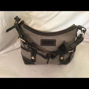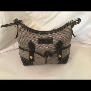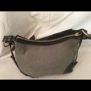 DOONEY & BOURKE Black white Canvas Leather Trim Hobo Bag 13 W x 9 L
