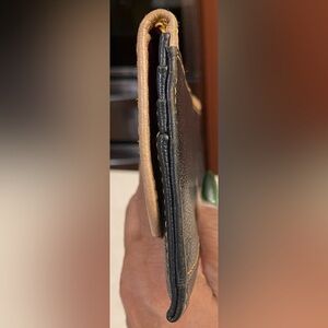 This DOONEY & BURKE Black & Tan Flat Envelope Pebbled Leather Wallet is in Exceptional Used Condition (EUC): Previously lovingly cared for; but this is a preloved (used) item, some normal and minimal wear is expected; beautiful wallet, interior needs cleaning. Depending on device used, color may vary. Review pics as they’re part of the description. Sold as is, no refunds. All auction bids/wins are final, no cancellations.