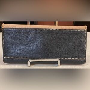 DOONEY & BURKE Black & Tan Flat Envelope Pebbled Leather Wallet, EUC
