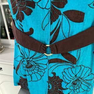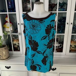 DORBY Linen Blend Sleeveless Top Size 10 Zipper Closure Turquoise and Brown