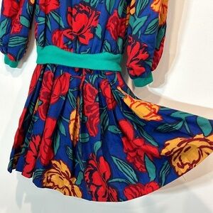 DORISSA INTERNATIONAL NICOLE DRESS VINTAGE blue FLORAL VICTORIAN PUFF SLEEVE 10