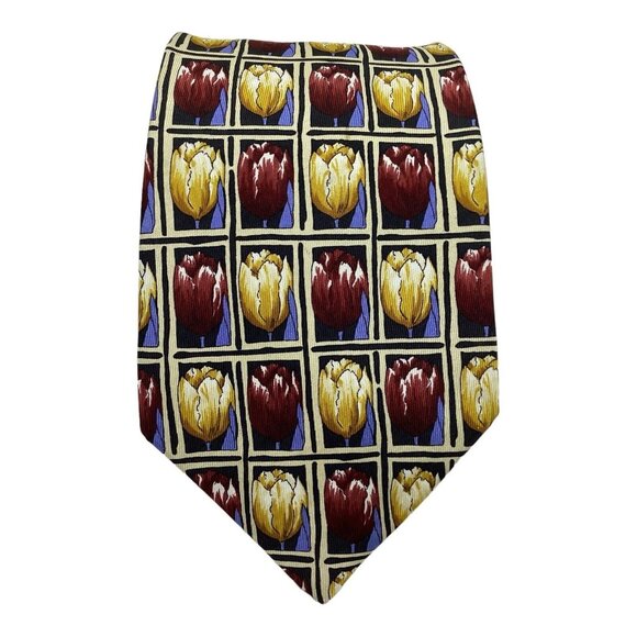DORMEUIL Yellow Burgundy Floral Silk Tie HandMade Italy 59"/ 3.9" EC