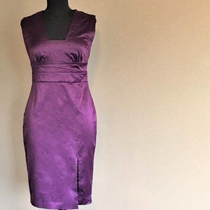 Professional career/office/date-night dress beautiful eggplant color. In terrific pre-loved condition! Length 38" shoulder to hem. Waist 27" hips 36" bust 32" Figure flattering design in easy-to-wear cotton 52%, polyester 44% and 4% elastine!. Hidden back zipper closure Great color, great design! Get ready to receive compliments!!