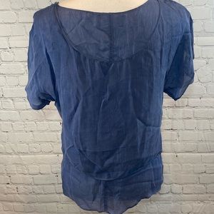 DOROTHY SCHOELLEN Blouse Layered Blue Embellished with Chain & Rhinestones-S/M