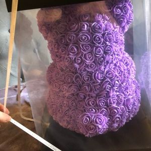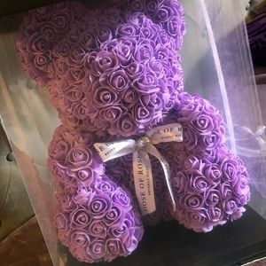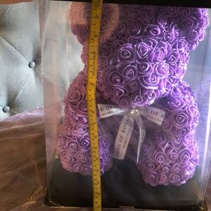 This bear is perfect for anniversaries, birthdays, or valentines day! Or just because you love someone! It’s been kept in Pristine condition, in it’s original box! The flowers are not real, they are a foam like material. But that means your love will last forever! This piece will look great as decoration in your loved ones home or office! Faux roses, so these handmade bears last a lifetime with no care needed!