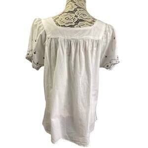 DOTS white peasant-style black embroidery square neckline Large