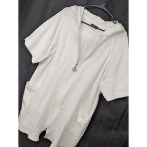 DOTTI! COVER UP HOODIE, ZIP FRONT! WHITE ON WHITE SHIP'S WHEEL! SZ 1X
