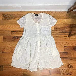 DOTTI White Lace Button Up Mini Dress Cotton Crepe ??