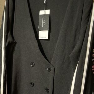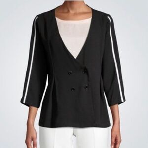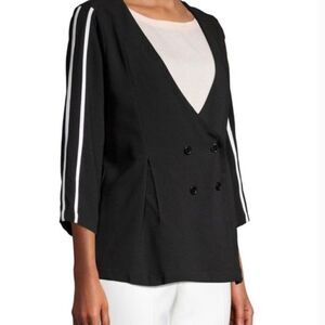 DOUBLE Breasted Cut Blazer XL oversized Black w White Side Stripe NWT