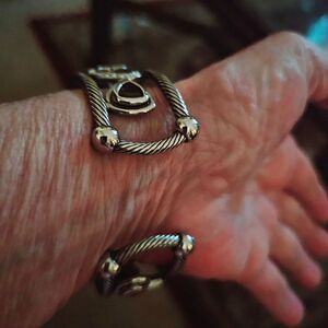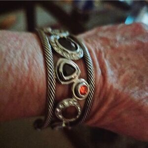 Cable style cuff bracelet embellished with czs and faux gemstones! It looks just like the "real deal"! Add it to your costume collection and receive rave reviews. I own this bracelet and often interchange it with several of my authentic DY rings. Affordable and Fun! NWOT.