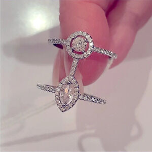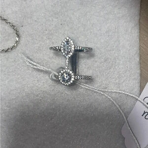 DOUBLE CONNECTED RING STERLING SILVER MARQUE AND BRILLIANT CUT WHITE SAPPHIRE 8