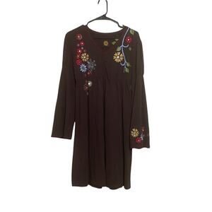 DOUBLE D RANCH Brown embroidered flowers dress Leg Of Mutton sleeves Size Small