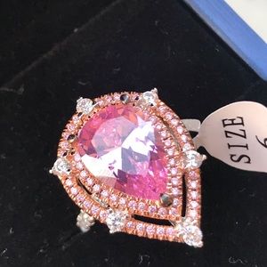 DOUBLE HALO PEAR CUT PINK STERLING SILVER RING