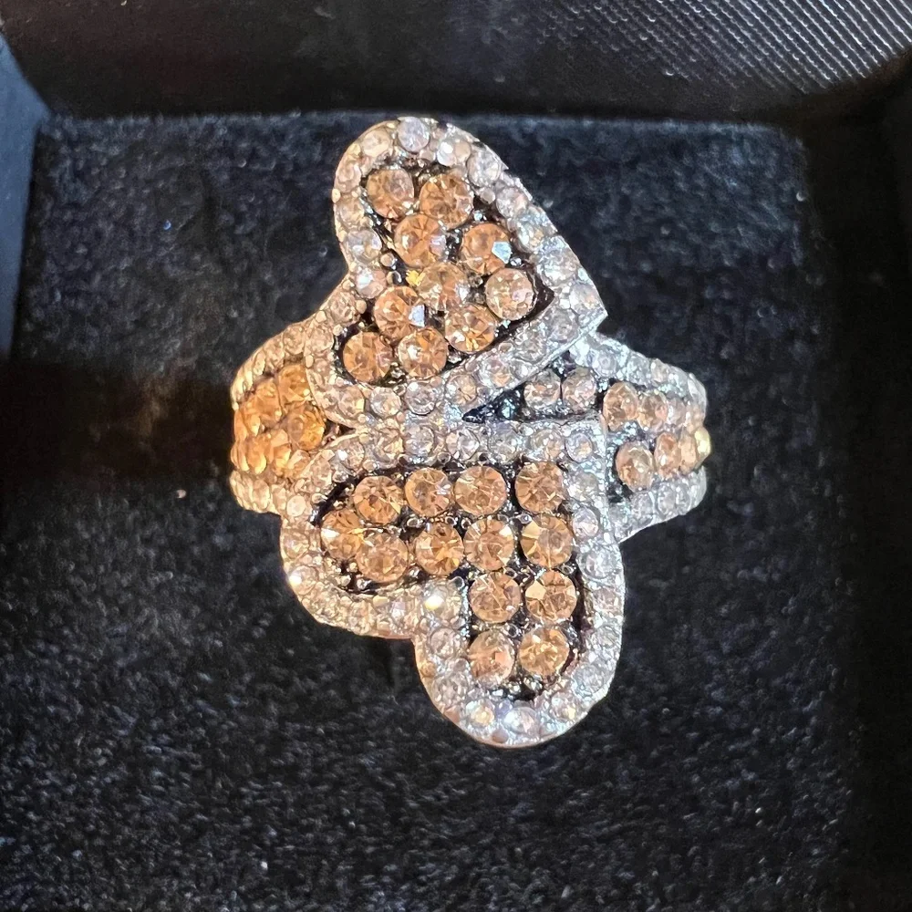 NWOT Champagne Color and White Austrian Crystal Black Oxidized Stainless Steel Ring Size 6.25
