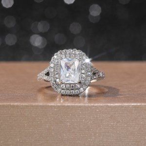 💥DOUBLE LAYER 14K WHITE GOLD RADIANT CUT PURE CZ LUXURY WEDDING RING, K856