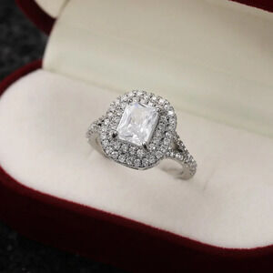 🌸DOUBLE LAYER 14K WHITE GOLD RADIANT CUT PURE CZ LUXURY WEDDING RING, K856