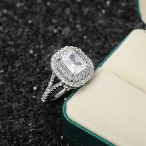 💥DOUBLE LAYER 14K WHITE GOLD RADIANT CUT PURE CZ LUXURY WEDDING RING, K856