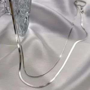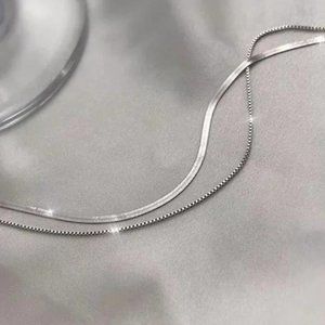 DOUBLE LAYER 925 STERLING SILVER CHAIN NECKLACE, NICE NECKLACE, CUTE NECKLACE