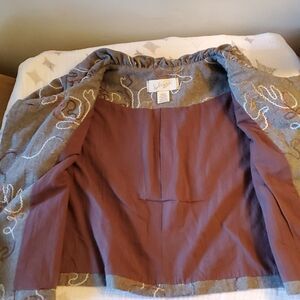 unique wool polyester. cotton lined . vest/ top. short sleeve blazer. with pockets
