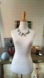 Silver tone double strands with open and closed fixed metal discs in various shapes and finishes as well as small round beading.