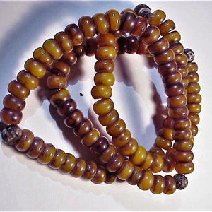 38"INCHES. COPAL RESIN AMBER BEADS Often called "African amber". These are from Tibet and ar shades of butterscotch (dark yellow to brown). Wear as is or use to make statement necklaces. There are 4 bone acent beads.