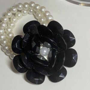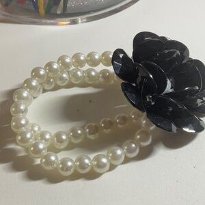 DOUBLE STRAND PEARL BRACELET WITH BLACK FLOWER