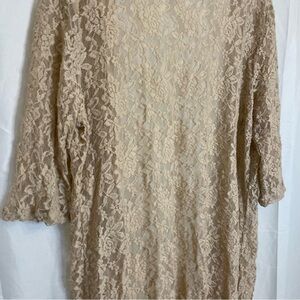DOUBLE TAKE Women’s Tan Nude Lacy Sheer Kimono Cardigan Robe One Size