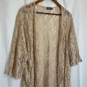 DOUBLE TAKE Women’s Tan Nude Lacy Sheer Kimono Cardigan Robe One Size