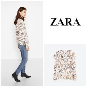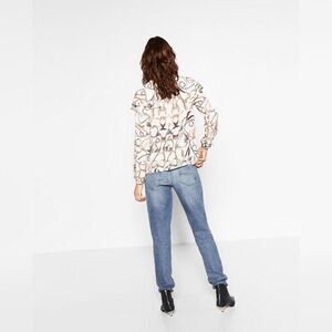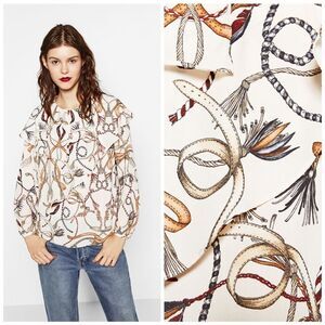 ✨Chain print top. Round neck and long sleeves. Double frill detail on the front. Buttoned cuffs. Back button fastening.
