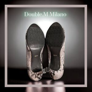 DOUBLE M MILANO Metallic Silver Python Print Statement Crystal Rhinestone Heels