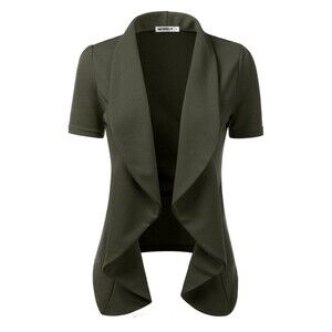 DOUBLJU Casual Draped Ruffles Blazer Short Sleeve Basic Open Front Cardigan...