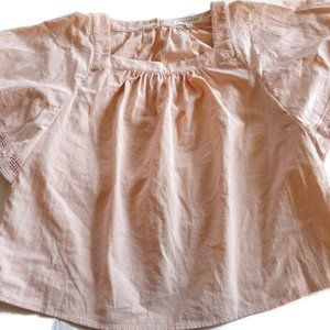 DOWNEAST Pink Cotton Peasant Blouse/ Top/ Crochet Trim/ Square Neck/ Size M