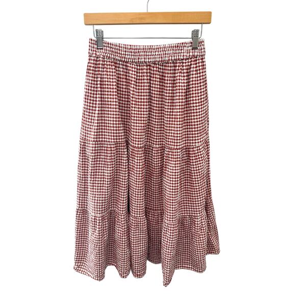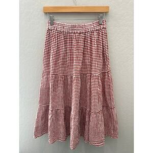 DOWNEAST | Red White Gingham Tiered Midi Skirt | Medium