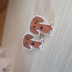 Soulful little dachshund, handmade in the USA, with hypoallergenic posts.