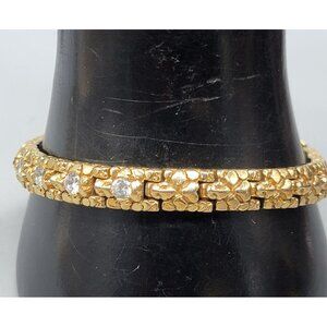 DP Gold Plated Diamante Accented Ladies Nugget Bracelet Vintage Bling Size 7.5