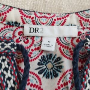 DR 2 Red and Blue Flowered Tasseled Short Sleeve Blouse Size M