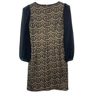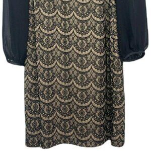 DR Collection 4 Knee Length Shift Dress Black Lace Overlay Long Sleeve Back Zip
