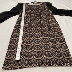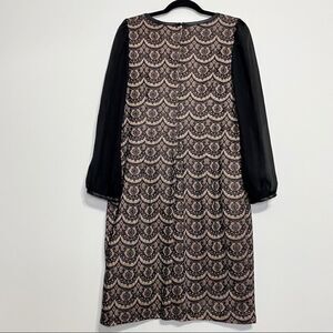 DR Collection Nude & Black Lace Long Sleeve Dress. Size 12 with measurements in the pictures. Gently used condition with no rips or stains.