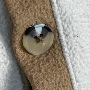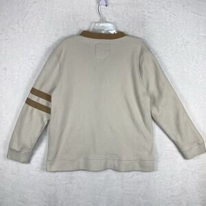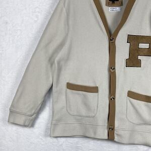 DR Essentials Mens L Ivory Tan Fleece Varsity Letter Cardigan Sweater College