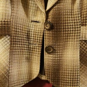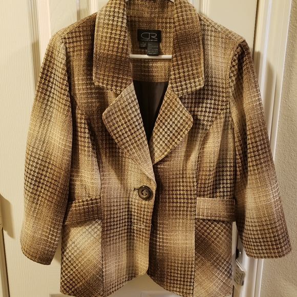 Multicolored peplum jacket. Tweed effect. Polyester lined inside. 100% poly outside.