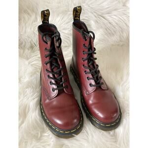 DR MARTENS 11822 Smooth Cherry Red Leather Combat Boots 7 US W