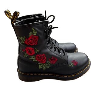 Dr. Martens 1460 Vonda rose embroidered black leather combat lace up boots in a size 10 womens. Size 42 EU.