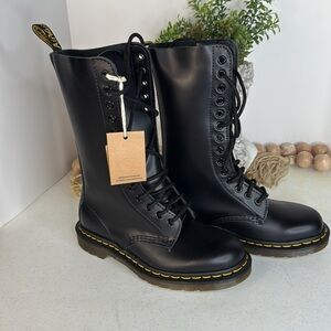 DR MARTENS BLACK 1914 SMOOTH LEATHER HIGH LACE UP BOOTS SIZE 7 NWOB