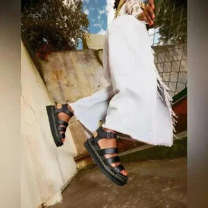 The signature pull loop and chunky sole with bright yellow stitches give grunge cred to this strappy sandal finished with a cushy, contoured footbed.