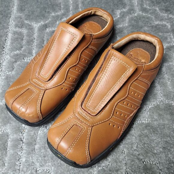 DR MARTENS Brown Leather Slip On Mules 8B02 LEATHER SQUARE TOE SHOES WOMENS SZ 6