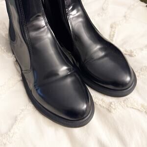 DR MARTENS | Flora Shine Shiny Chelsea Boots Pull-on Elastic Black | Size 10